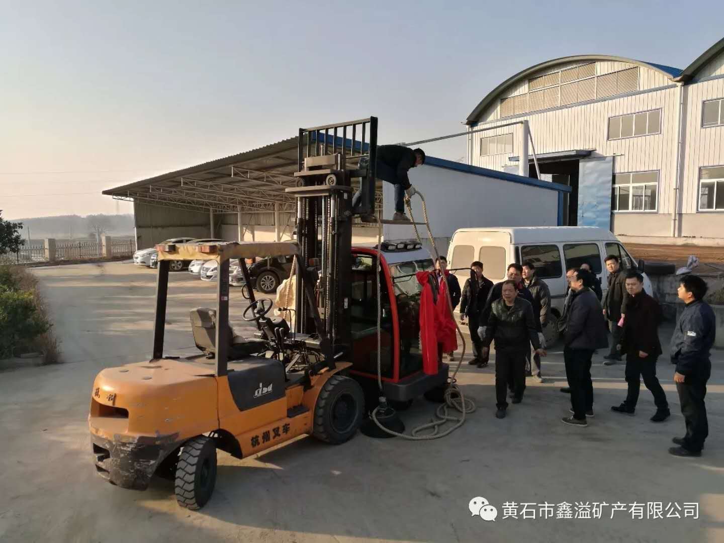 2017年12月26日上午,冬日暖陽下的黃石市鑫溢礦產有限公司廠區里充滿了歡聲笑語,大家簇擁著一臺披掛著大紅綢帶的多功能電動掃地車,目送它被吊裝上貨車駛出廠區大門。這臺多功能電動掃地車,將被捐贈給開發區汪仁鎮政府,以支持汪仁鎮的環境衛生工作。